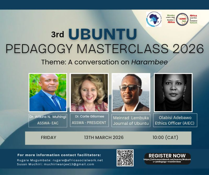 Theme: A conversation on harambee You are cordially invited to an advanced learning session dedicated to harambee, the theme for World Social Work Day and World Social Work and Development Conference 2026. Organised by the Africa Social Work and Development Network (ASWDNet) and the Association of Schools of Social Work in Africa (ASSWA), this annual...